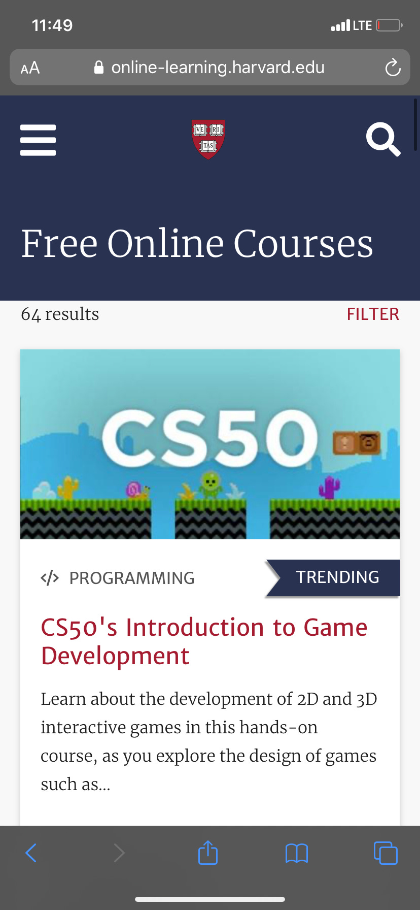 *Sharing the screenshot of the page of Harvard University*