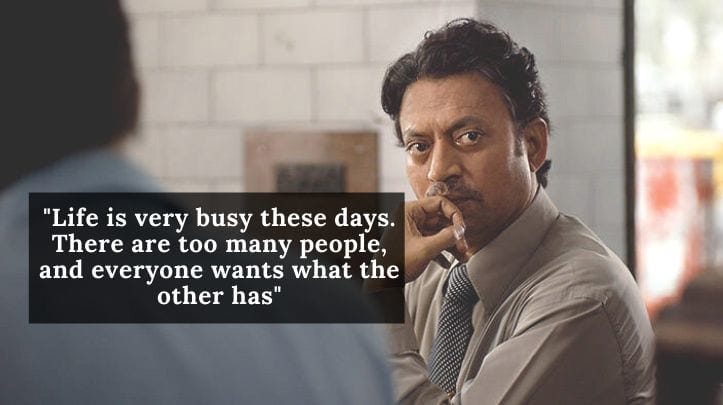 I thought to publish my next newsletter in a week’s time but this sudden demise of the legend of Bollywood ‘Irfan Khan’ left me flabbergasted and forced me to share some of the unparalleled dialogues which indoctrinate us with a heap of reality to our lives.